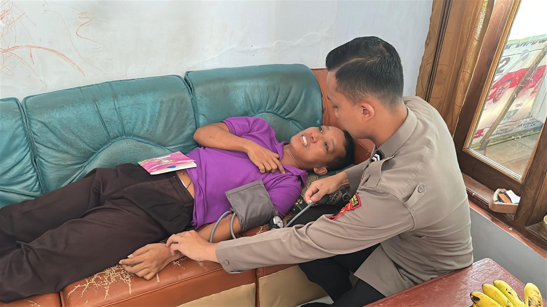 Penyerahan bantuan dilakukan langsung di kediaman Indra oleh personel Dokkes Polres Purbalingga. Selain membawa kursi roda, tim medis kepolisian juga memberikan layanan pemeriksaan kesehatan lengkap. Pemeriksaan meliputi pengecekan tekanan darah, pengukuran denyut nadi, pemantauan kondisi fisik, hingga konsultasi medis terkait keluhan yang dialami.
