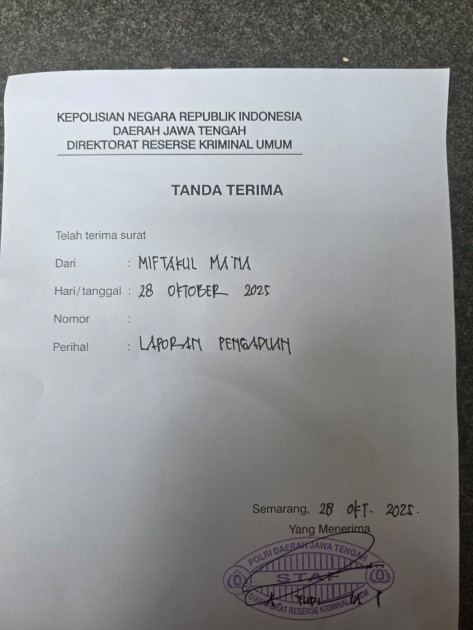 Ungaran 28/10/2025, suara-rakyat.net — Kasus dugaan penistaan agama yang mencuat di kawasan wisata Bandungan, Ungaran Kabupaten Semarang, kini resmi masuk ke ranah penyelidikan Polda Jawa Tengah. Seorang warga, Miftakul Ma’na, didampingi kuasa hukumnya, Advokat Donny Andretti, melaporkan peristiwa itu ke Direktorat Reserse Kriminal Umum (Ditreskrimum) pada Senin (28/10/2025).