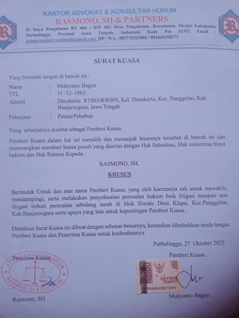 Rasmono menambahkan, jalur hukum dipilih bukan semata untuk kepentingan kliennya, melainkan juga sebagai upaya menjaga transparansi dan akuntabilitas dalam pengelolaan administrasi pertanahan di tingkat desa.